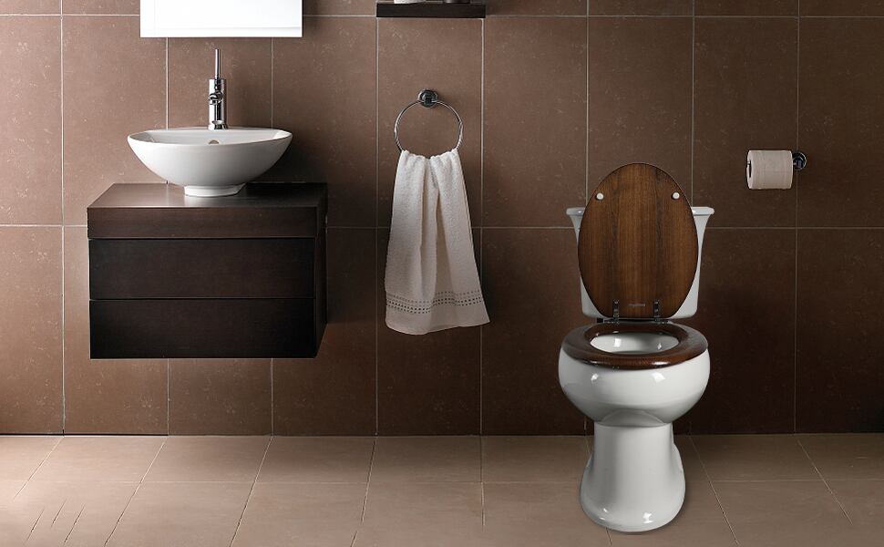 ヨーロピアンスタイル 高級木製便座 Walnut Effect サイズ兼用&真鍮製取付金具付 ソフトクローズ機能