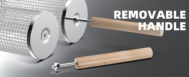 グリルバスケットは、取り外し可能なブナ材のハンドルを採用しています。