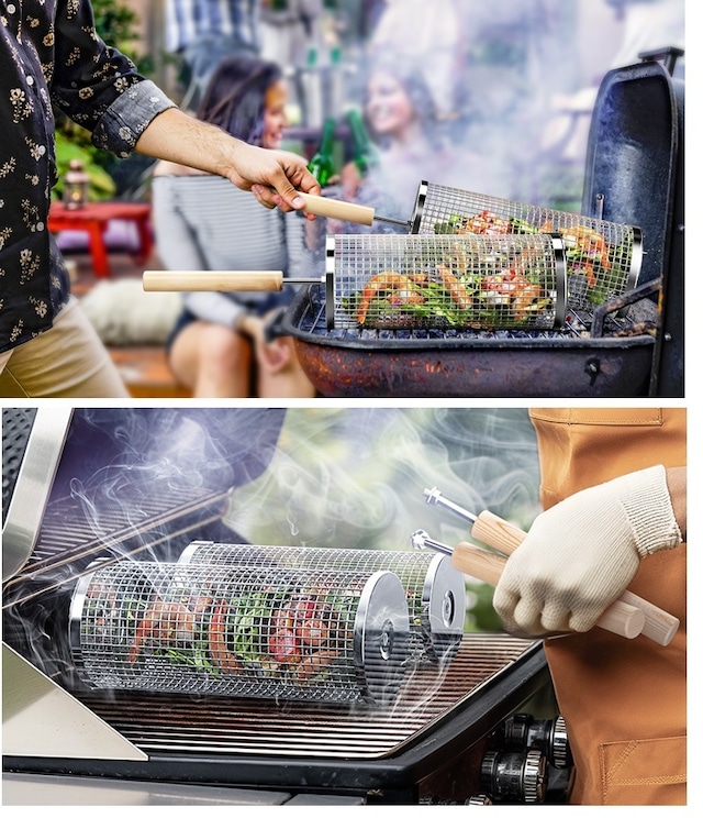 グリルバスケット 2個セット ハンドル付 BBQ 調理器具 ローリング グリル 動画商品紹介あり