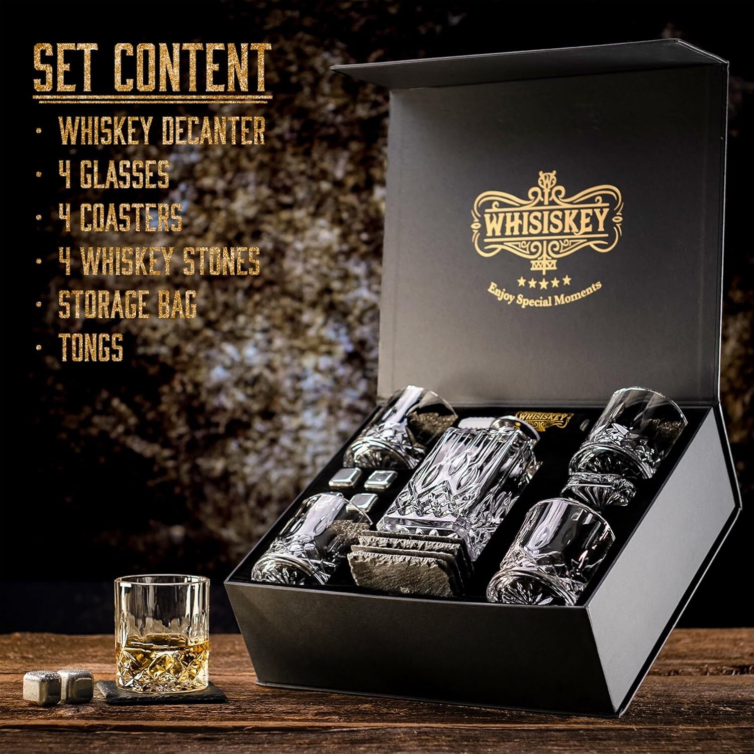 WHISISKEY - ウイスキーデキャンタセット - 700ml クラシックカラフェ - 男性用ウイスキーギフトセット - ウイスキーセット - 男性用グラスギフト - ウイスキーグラス4個、ウイスキーストーン4個、アクセサリー付き | BestonStyle 輸入雑貨専門店 海外お取り寄せ、おしゃれな便座から雑貨まで厳選して輸入販売中!