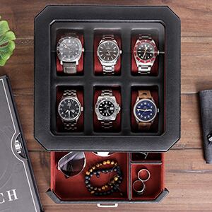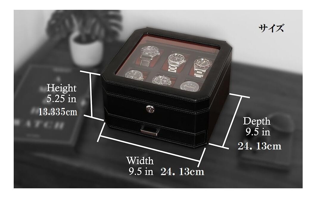 ROTHWELL 6スロット レザーウォッチボックス バレットドロワー付 - 高級腕時計ケースディスプレイオーガナイザー、マイクロスエードライナー、ロック付きメンズジュエリーウォッチホルダー、メンズ収納ボックスホルダー 大型ガラストップ (ブラック/レッド) | BestonStyle 輸入雑貨専門店 海外お取り寄せ、おしゃれな便座から雑貨まで厳選して輸入販売中!