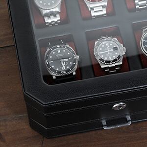 蓋とクッションの間には十分なスペースがあり、あらゆるサイズの時計を収納できます。