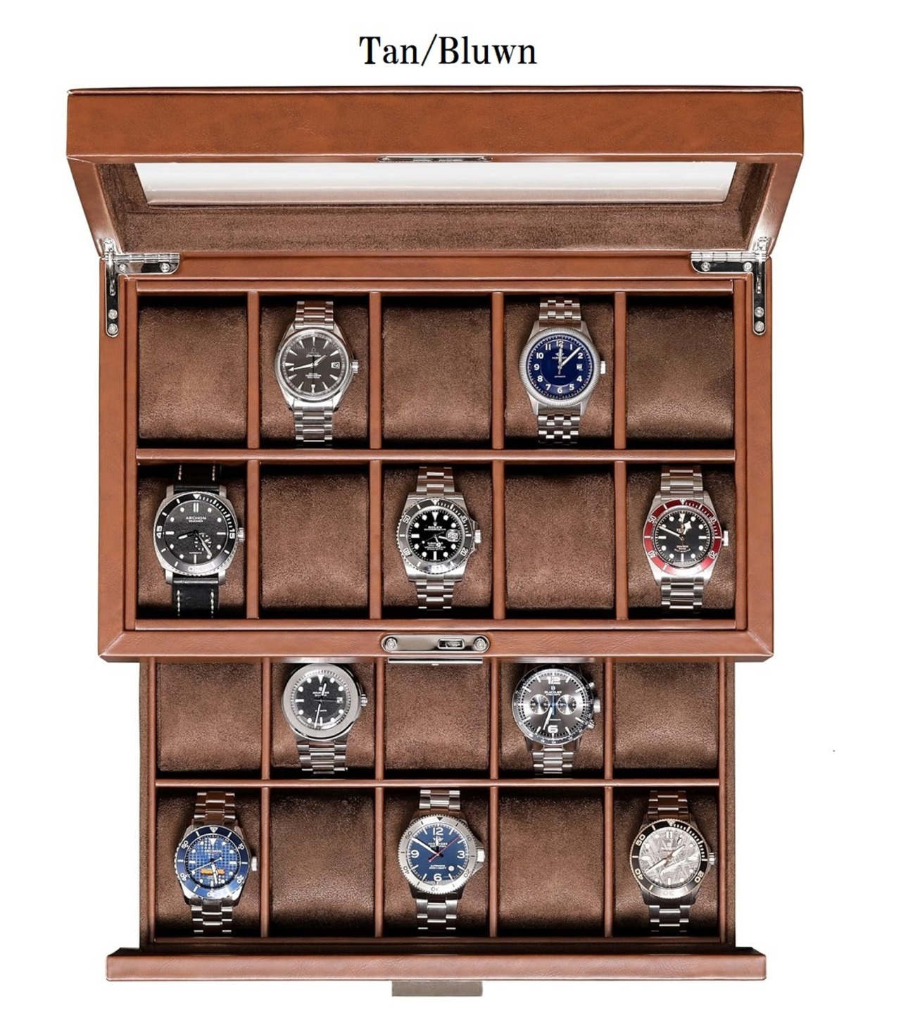 ROTHWELL 20スロットレザーウォッチボックス - 高級ケースディスプレイジュエリーオーガナイザー - 大型本ガラストップ付きロック式ディスプレイケースホルダー - 男女兼用ウォッチボックスオーガナイザー 5カラー | BestonStyle 輸入雑貨専門店 海外お取り寄せ、おしゃれな便座から雑貨まで厳選して輸入販売中!
