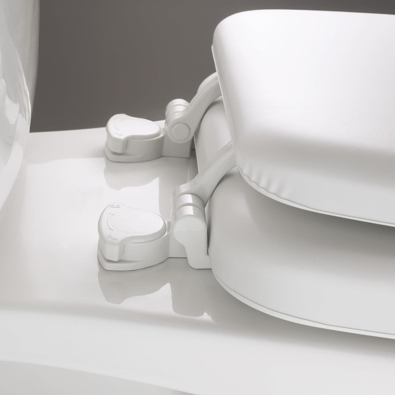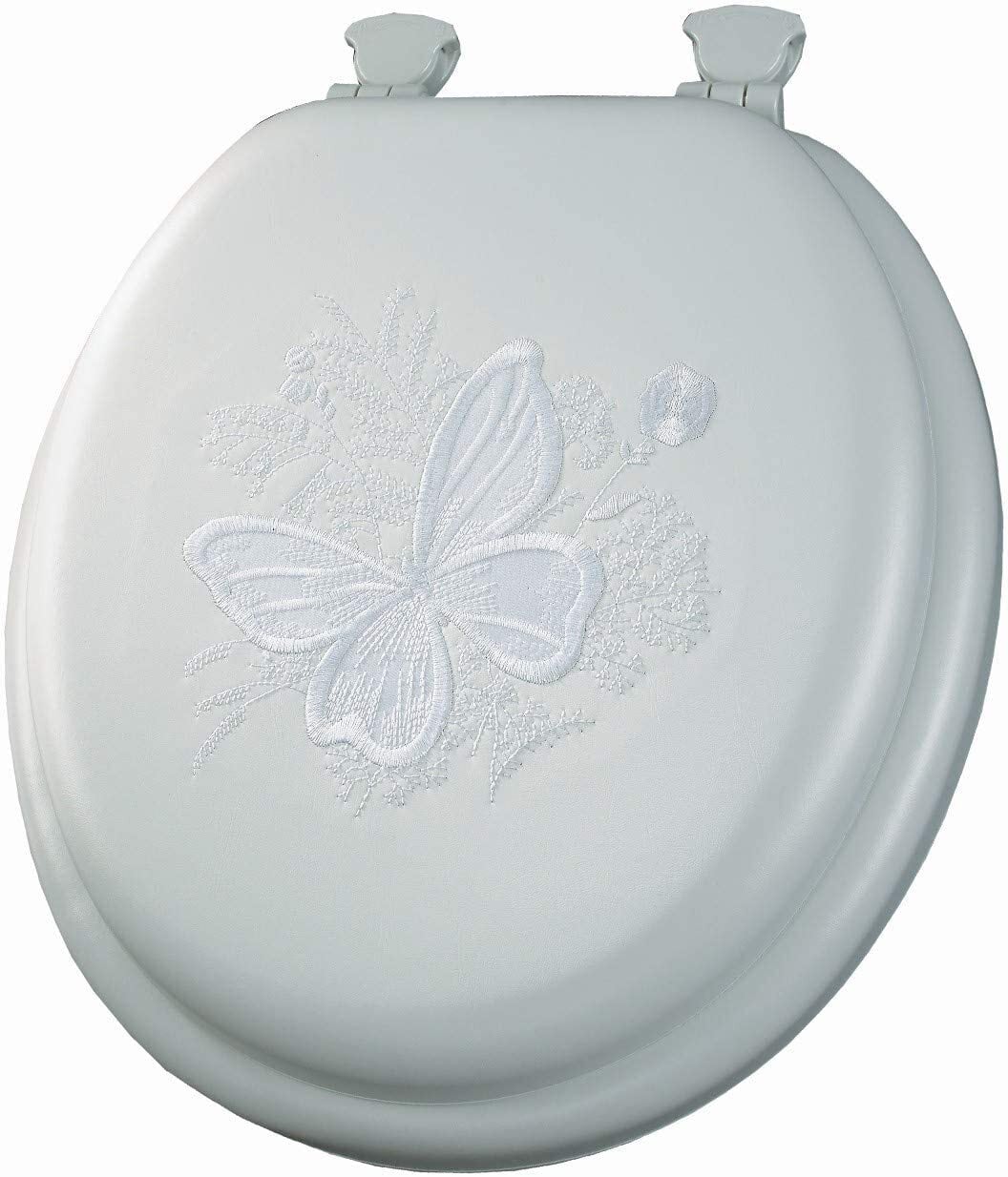 メイフェア パッド付きトイレシート、クッション付きソフトビニールとウッドコアシート、簡単取付ヒンジ、お手入れ簡単、丸型、ホワイト