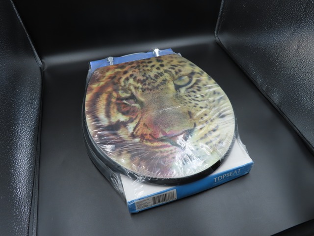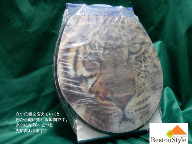 限定1台在庫処分!大変お買い得です!木製便座 3Dライオン・トラ・豹デザイン 立つ位置で表情が変化!大迫力3D!